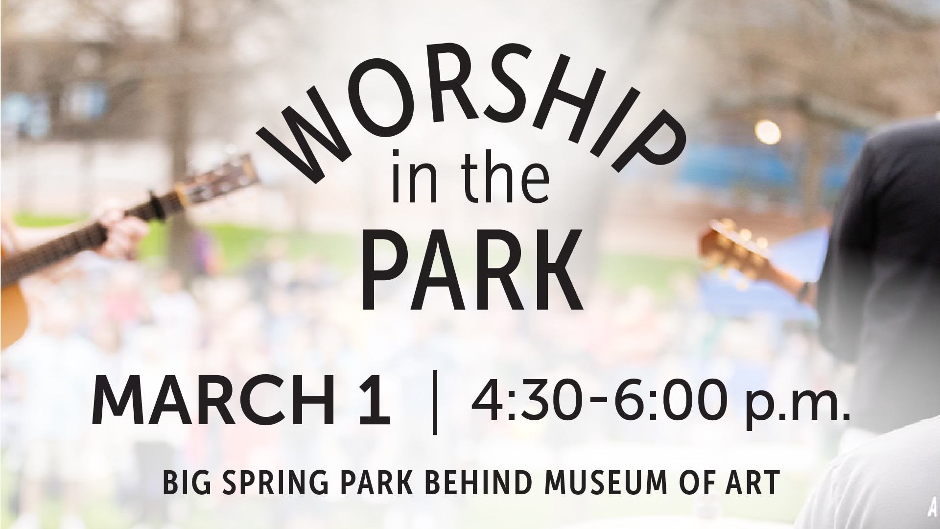 You're Invited! We hope you'll join us for Worship in the Park on Sunday March 1 from 4:30 - 6:00 pm in Big Spring Park, behind the Huntsville Museum of Art!